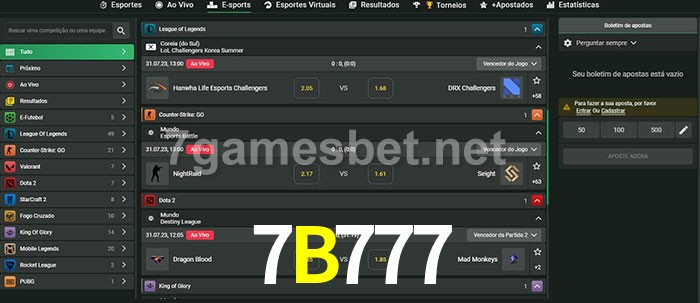 A aposta 7B777 oferece aos jogadores a experiência mais conveniente de apostas em eSports!